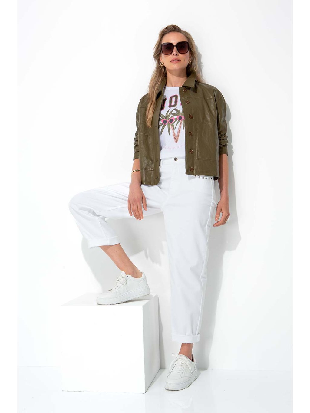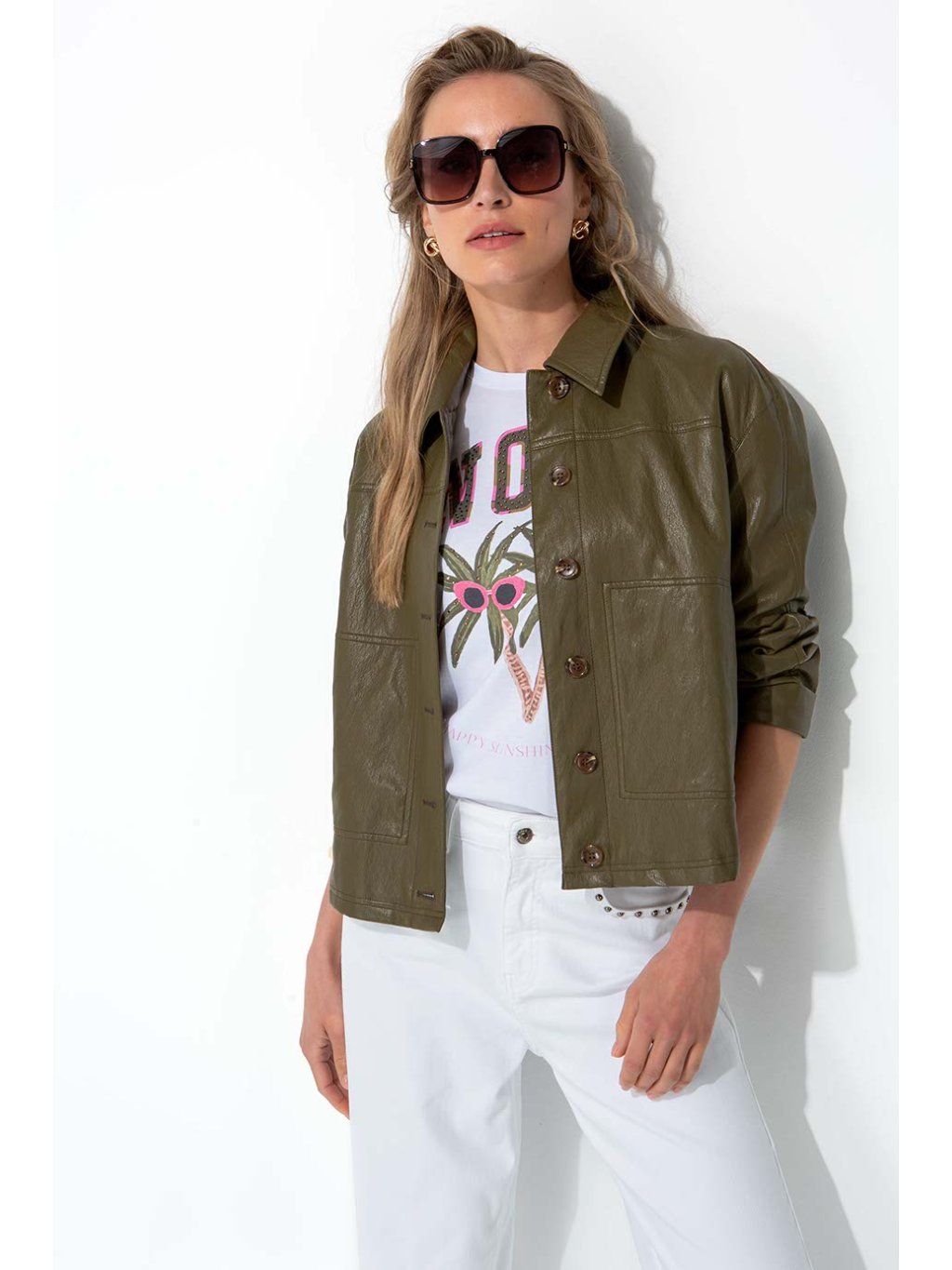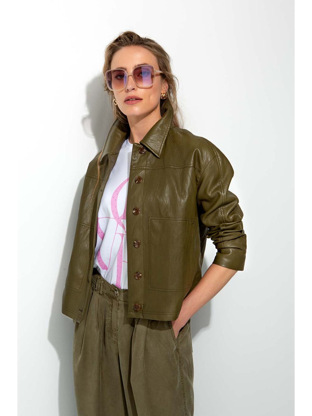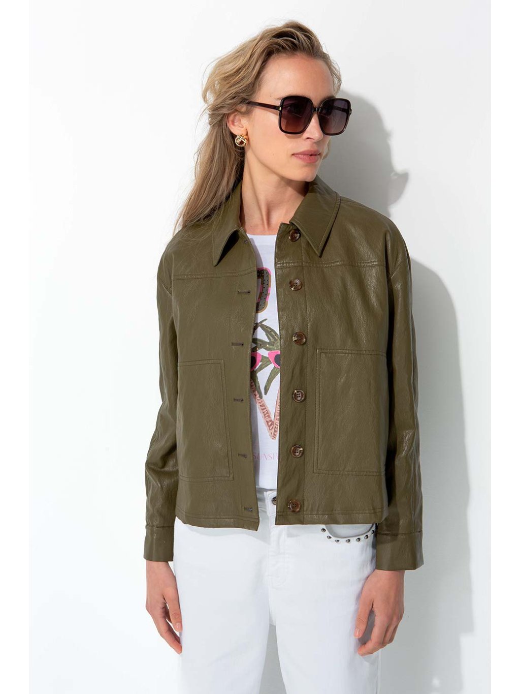 Elegantní bunda CATNOIR v khaki barvě. Zapínání na knoflíky. Jemná eco kůže.