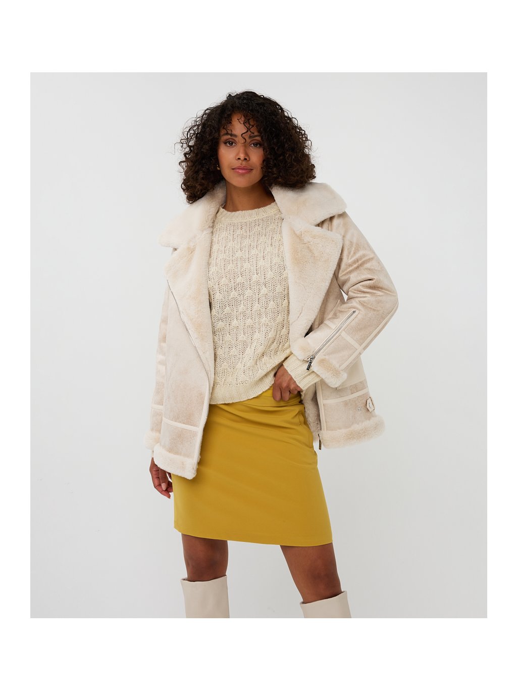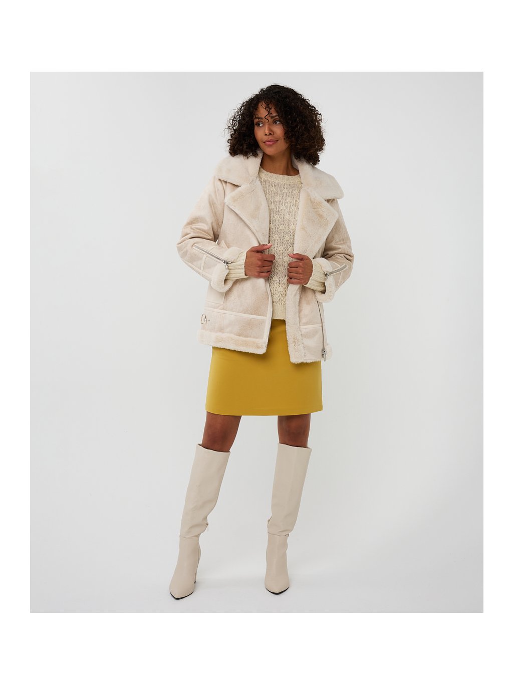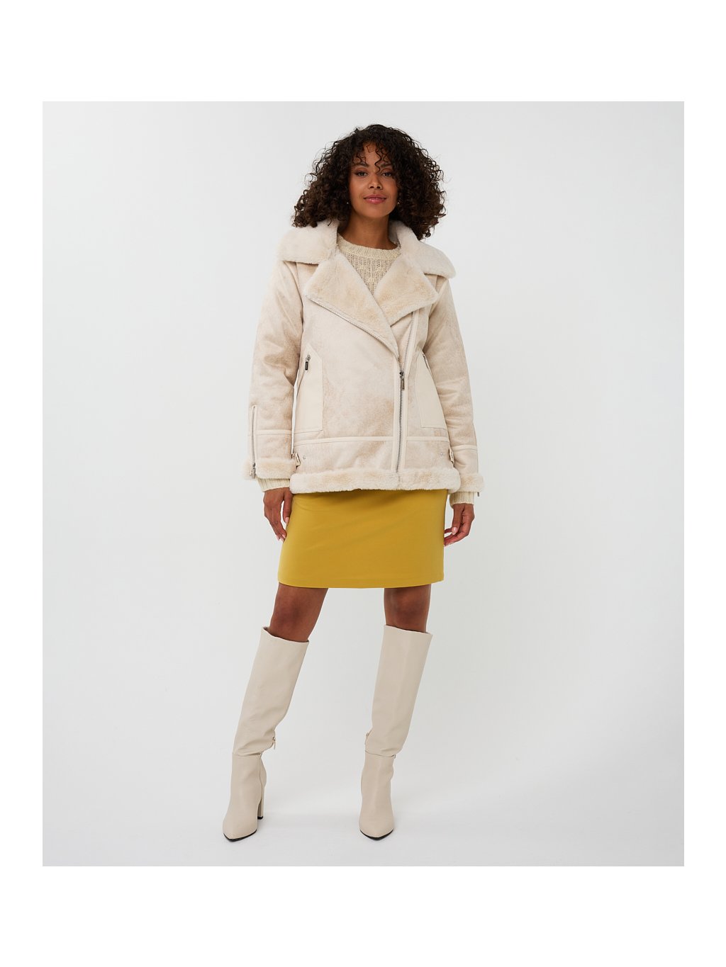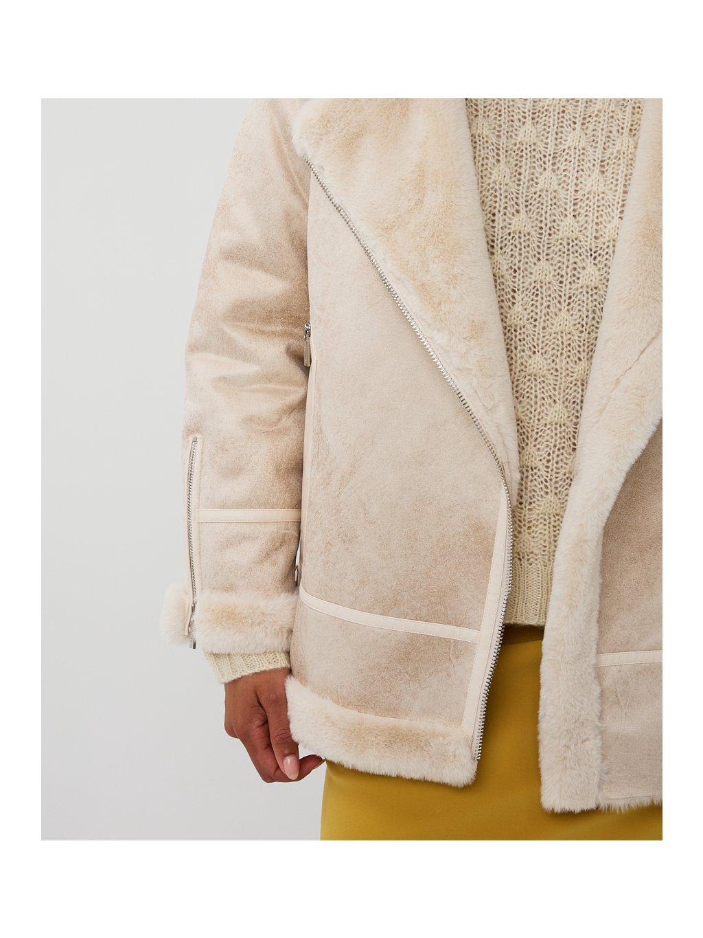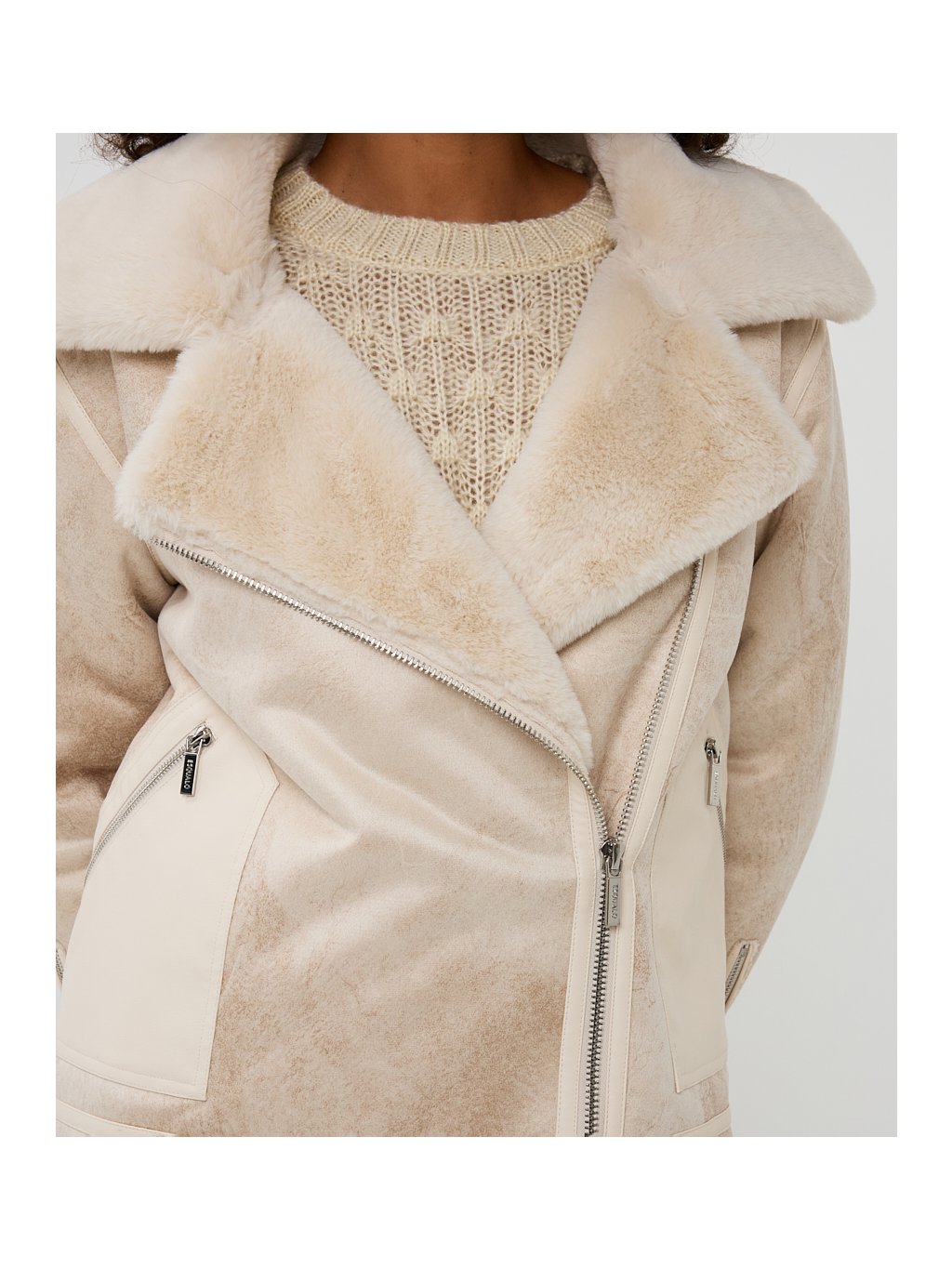 Pěkná teplá bunda podšitá umělou kožešinou s diagonálním zipem, kapsami na zip, zipy na rukávech a přezkami na obou stranách.