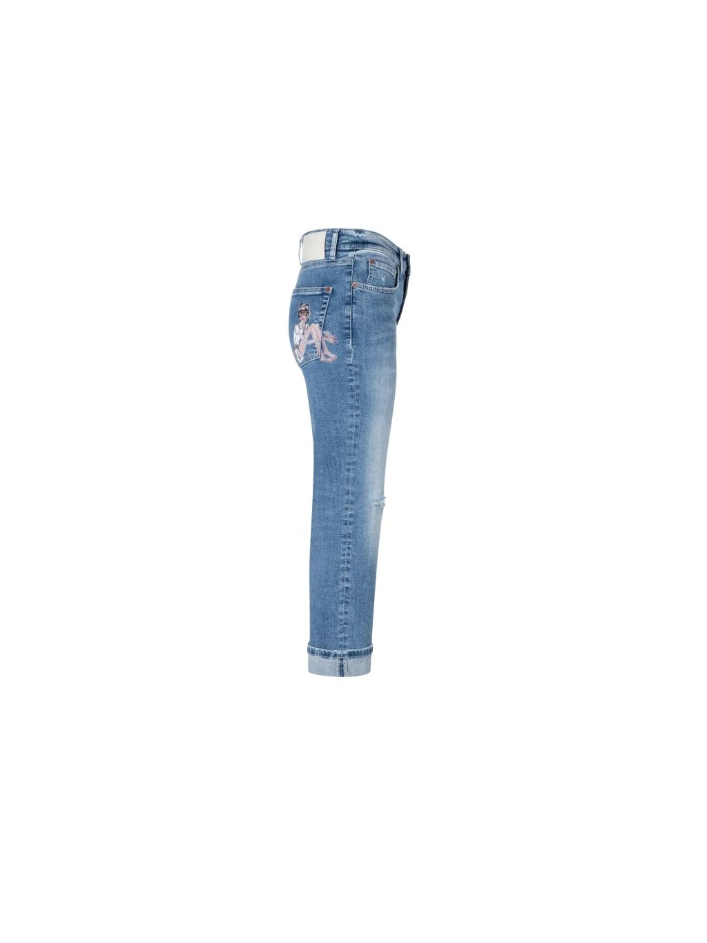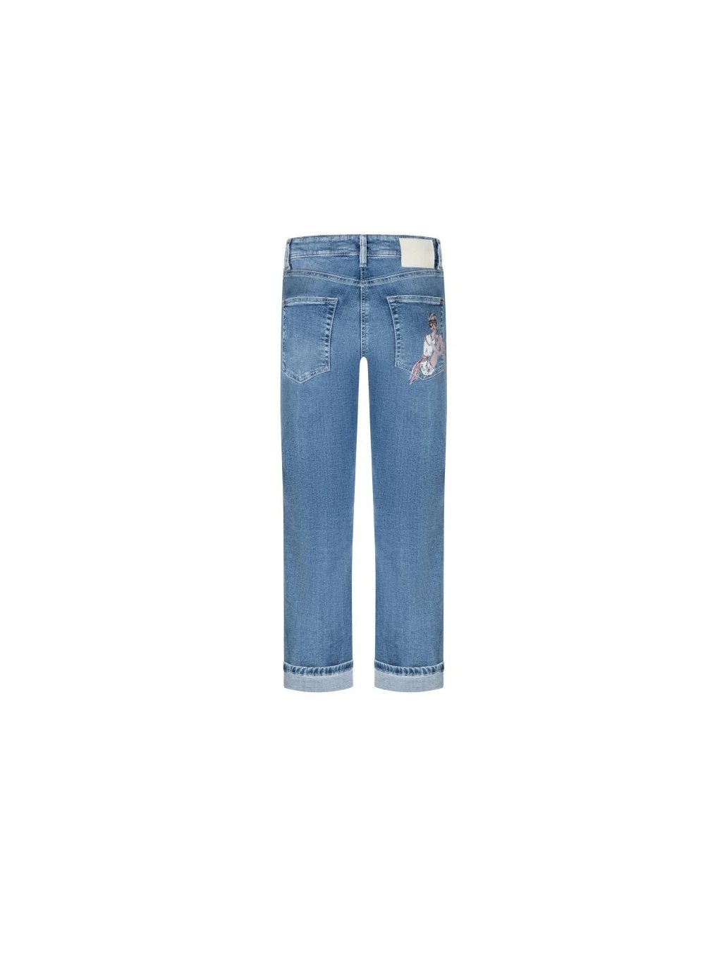 Džíny CAMBIO mají rovný střih odshora až dolů a jsou zakončeny manžetou. Ozdobný tisk na zadní kapse.