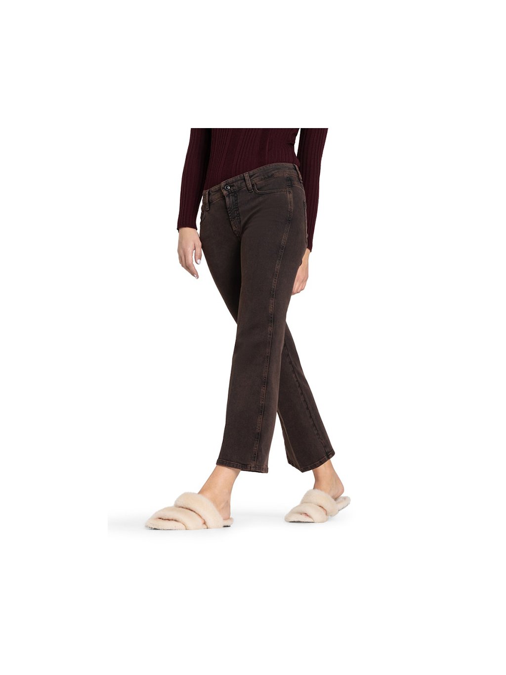 Džíny CAMBIO s mírně rozšířenými nohavicemi. Jsou vyrobeny z vysoce kvalitního moderního denimu v krásné čokoládové barvě a jejich pružná vlákna zajišťují pohodlí, bezkonkurenční měkkost a perfektní střih.