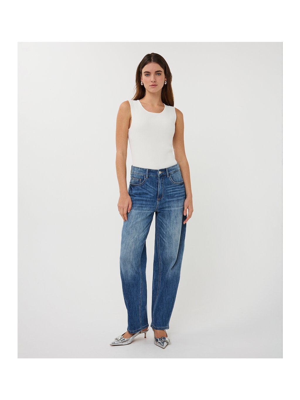 Džíny ESQUALO, módní střih barel, jemné šisování.