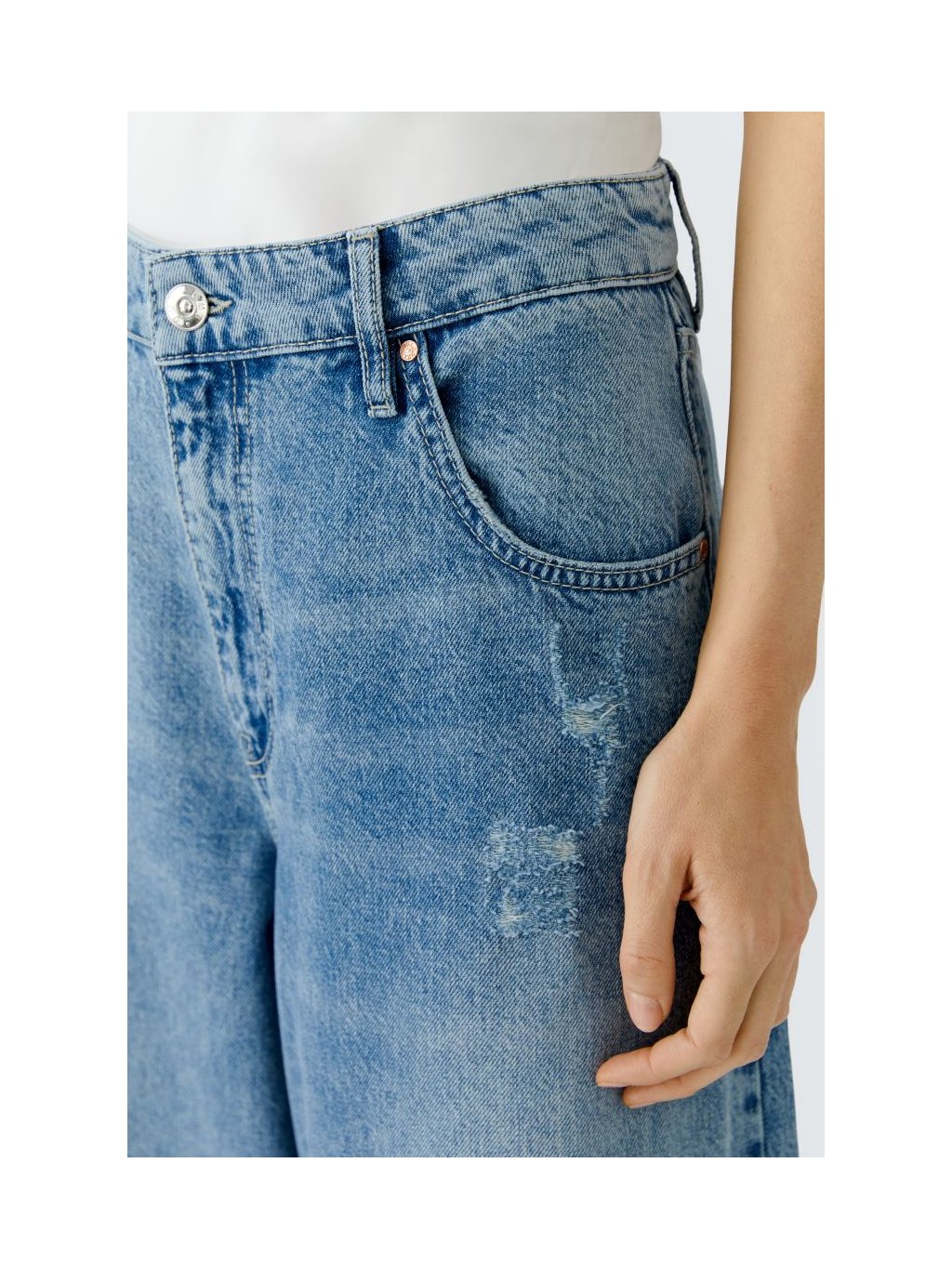 Tyto široké džínové culottes kalhoty představují dokonalou rovnováhu mezi retro stylem a moderním ležérním stylem. Díky panelovým švům a uvolněné siluetě vnášejí do ležérního stylu odvážný a stylový nádech.