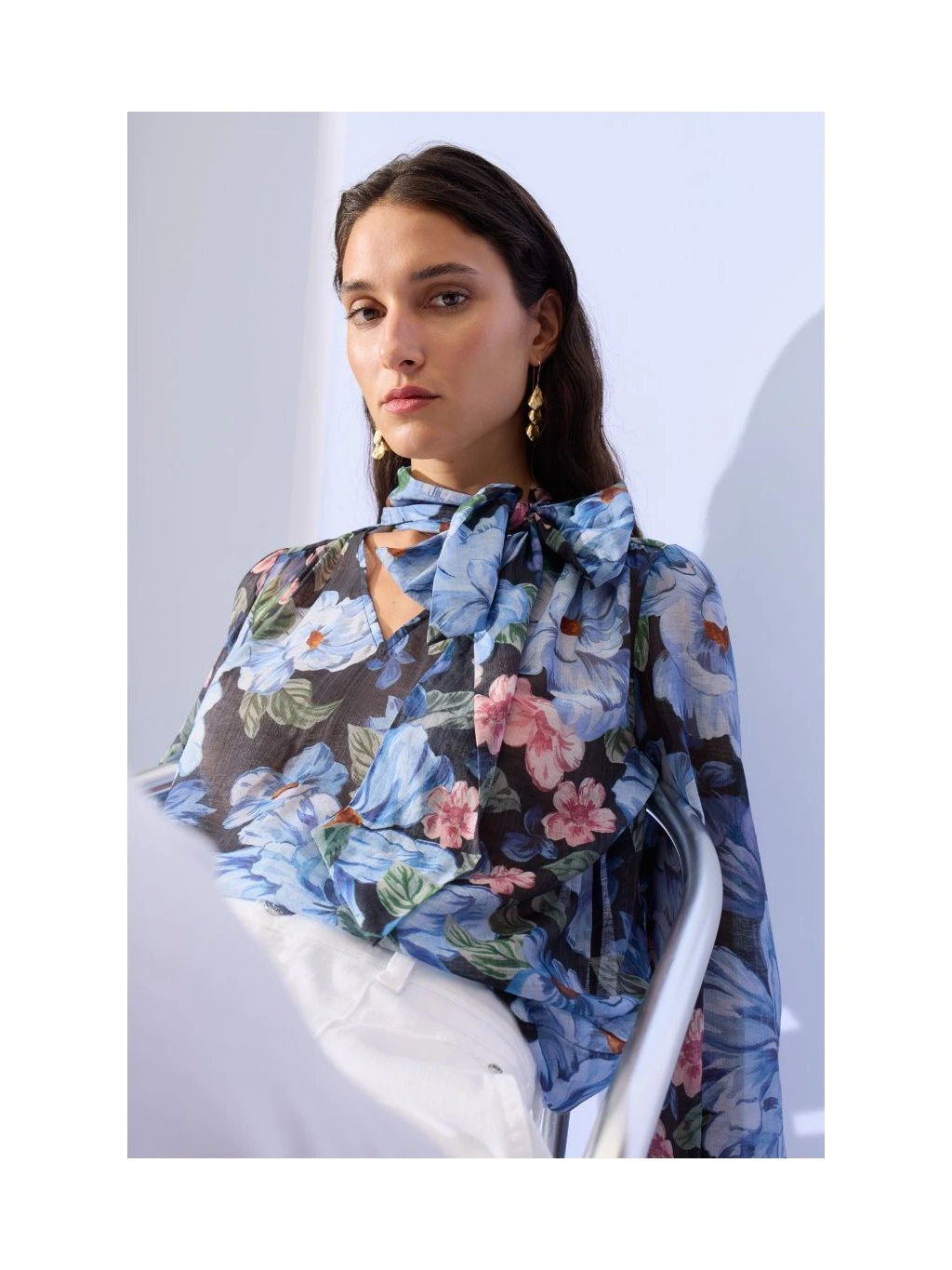 Ženská halenka s mašlí - snadno se kombinuje s tmavě modrým fondánem