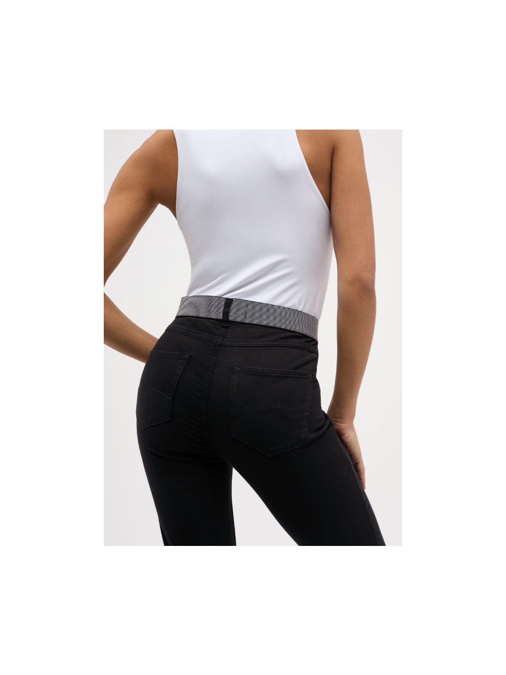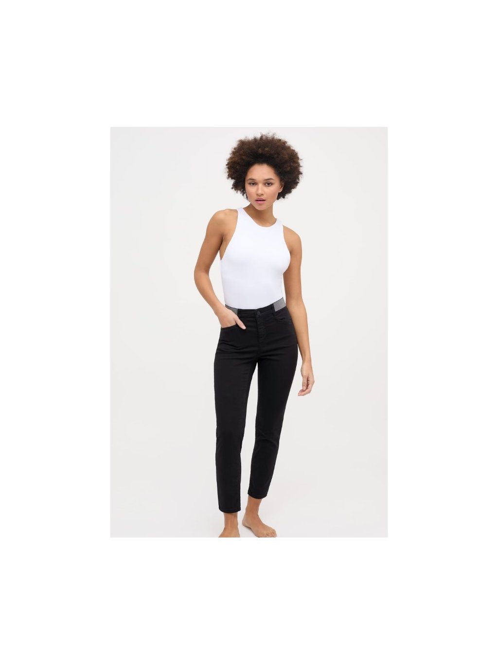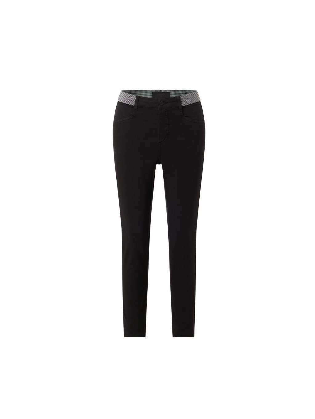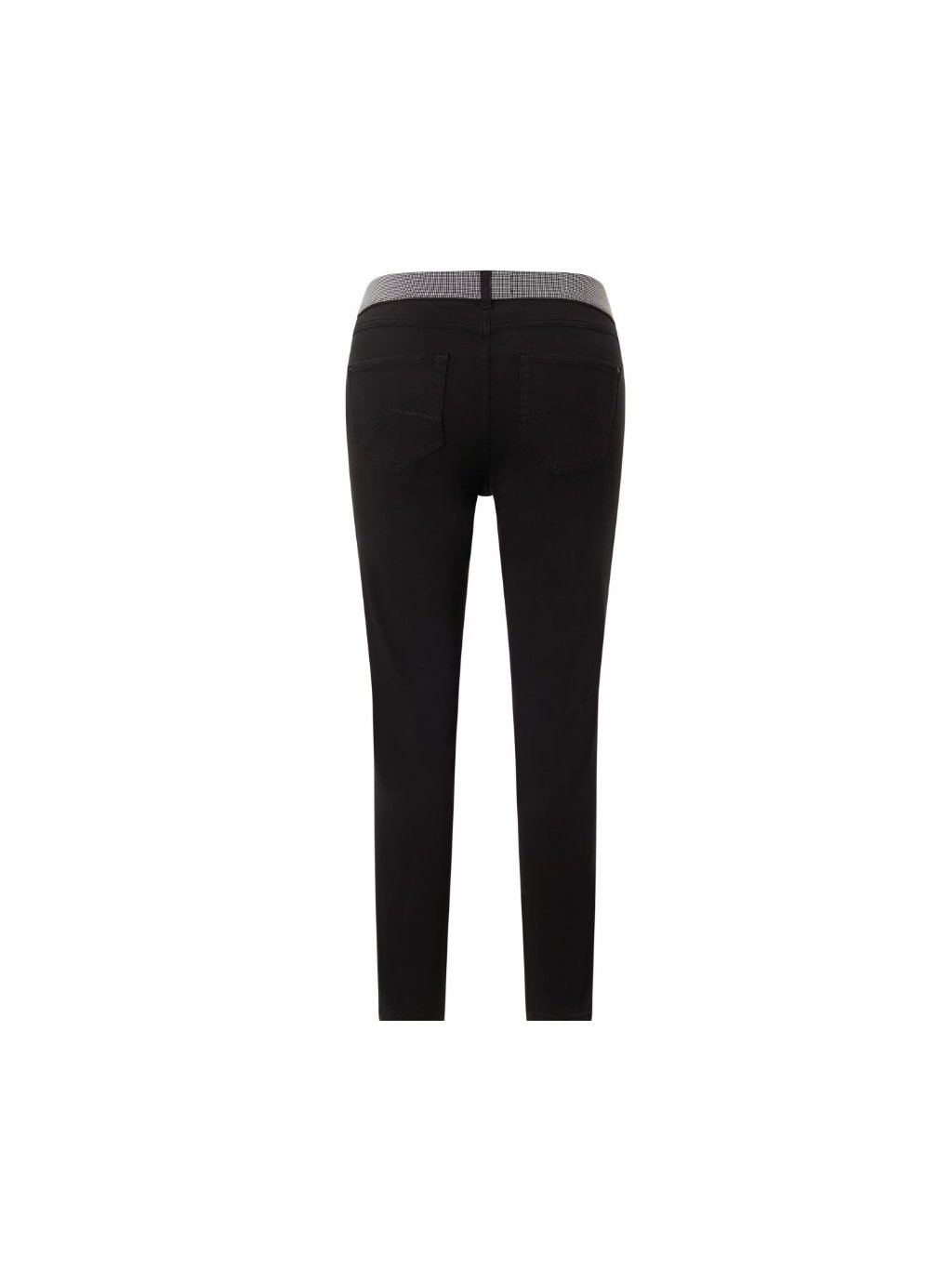Nadčasové elegance. S kontrastním strečovým pasem, lichotivým úzkým střihem a zkrácenou nohavicí jsou tyto kalhoty nejen výrazem moderního stylu, ale nabízejí také maximální pohodlí.