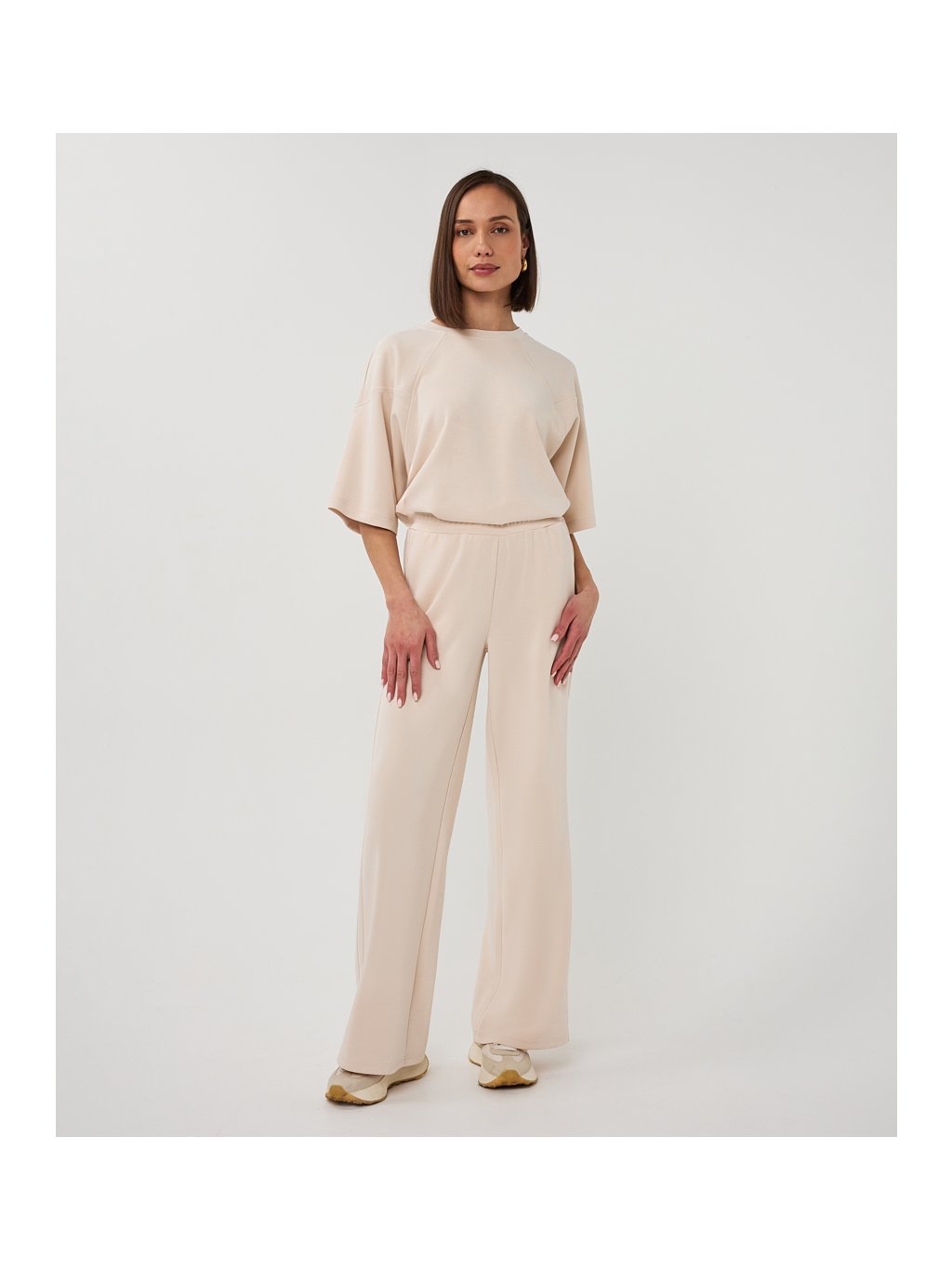 Široké kalhoty z měkkého modalu, v pase na gumu, po stranách nohavic lampas v barvě.