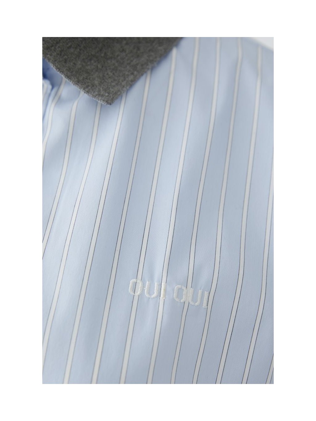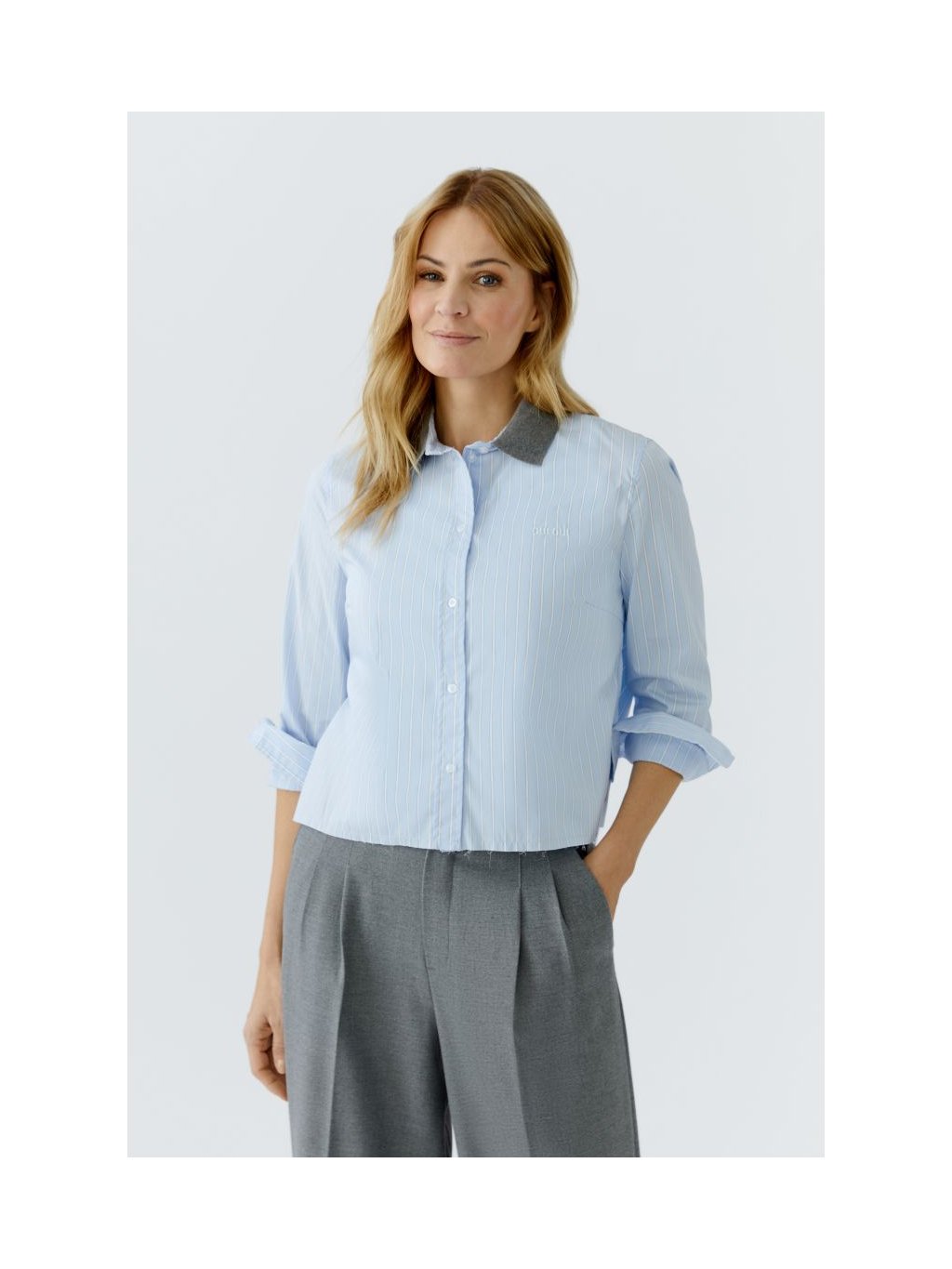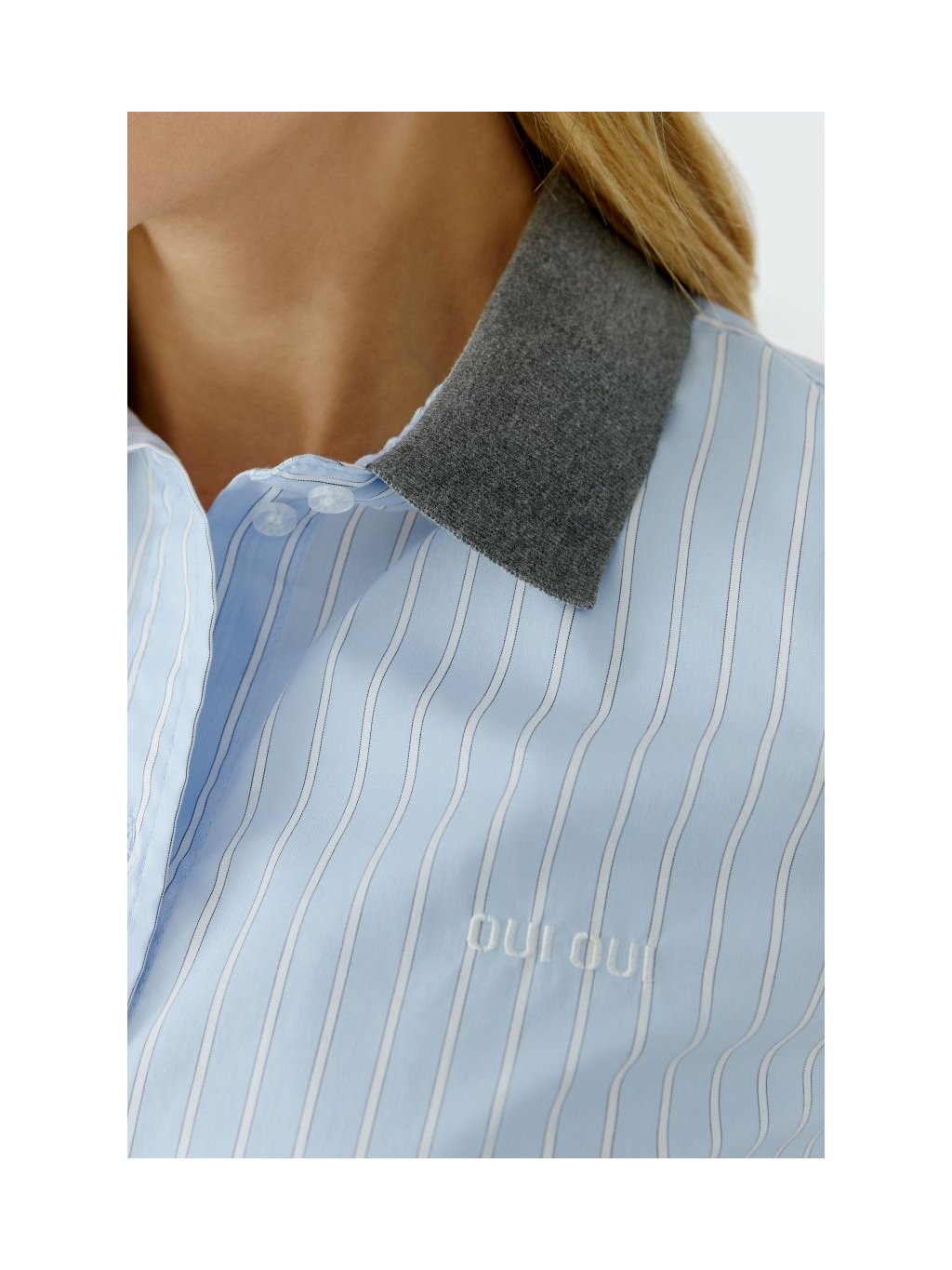 Pruhovaná košile OUI s bavlněným šedým límečkem, pruhovaná, zapínání na knoflíčky.