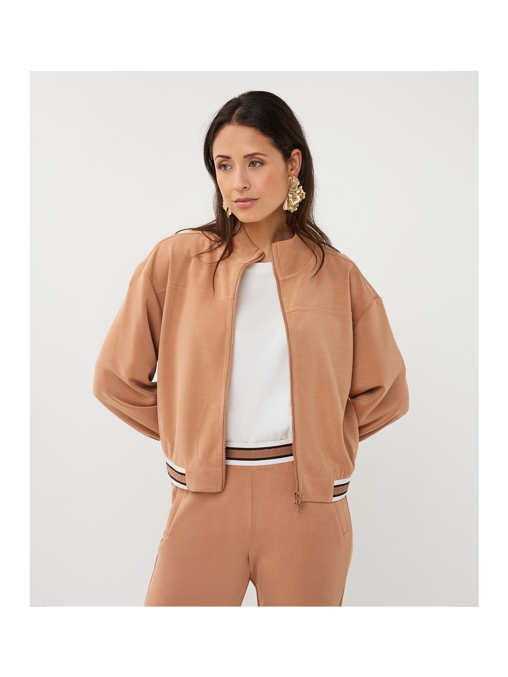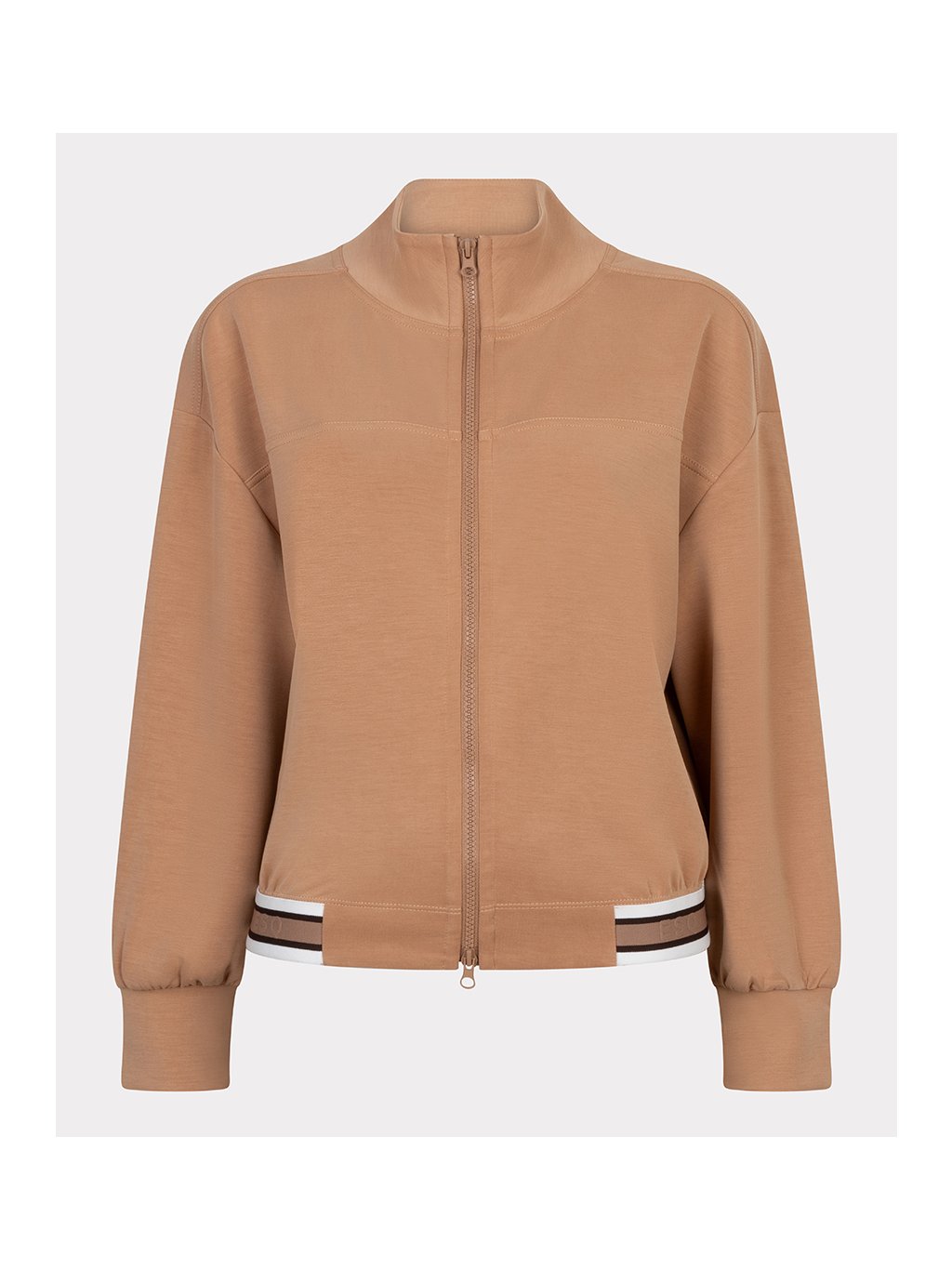 Modalová mikina se stojáčkem, zapínání na zip. Zakončená gumovým lampasem s logem ESQUALO.