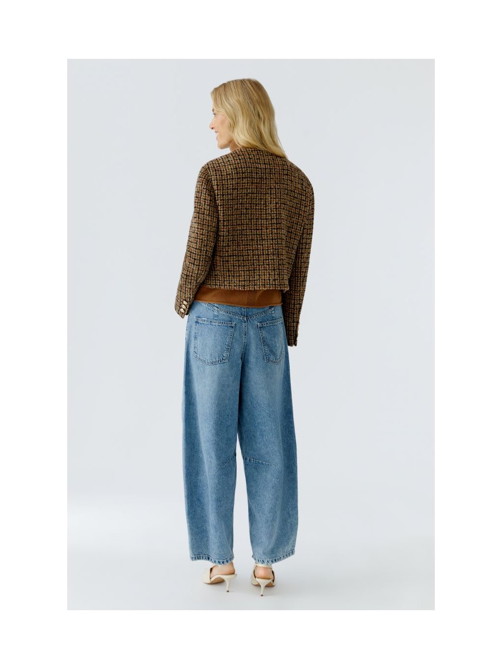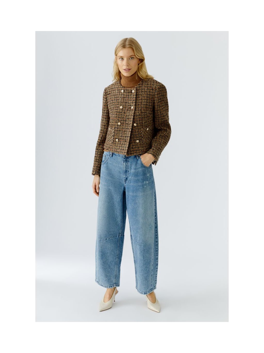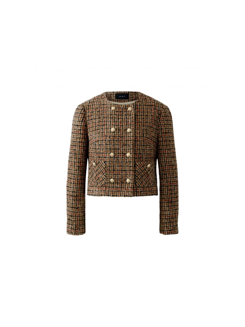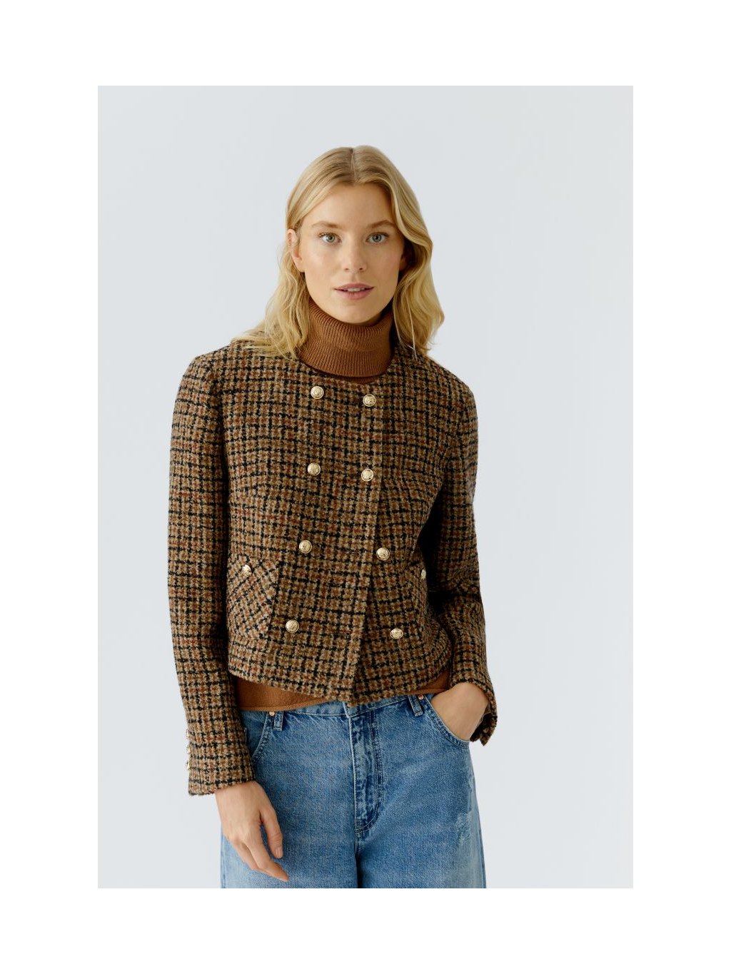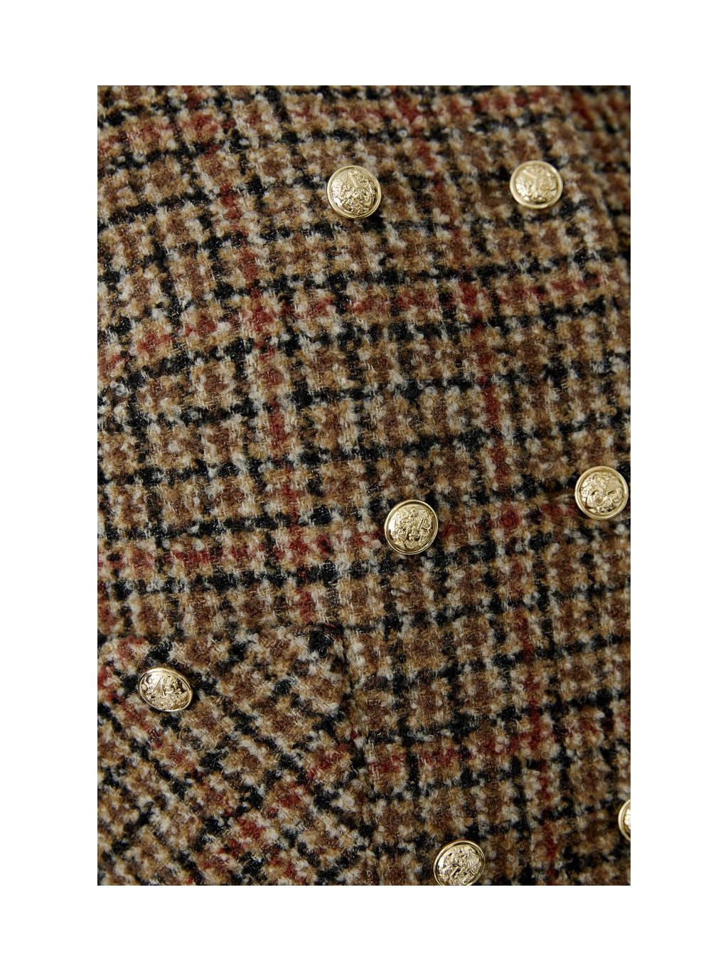Tato kostkovaná bunda z vlněné směsi je všestrannou volbou pro stylový vzhled. Kulatý výstřih a rovná silueta ji činí nadčasovou, zatímco dvojitá řada zlatých knoflíků s potiskem erbu a kapsy na knoflíky dodávají výrazný detail.