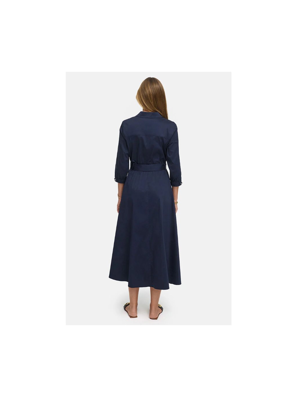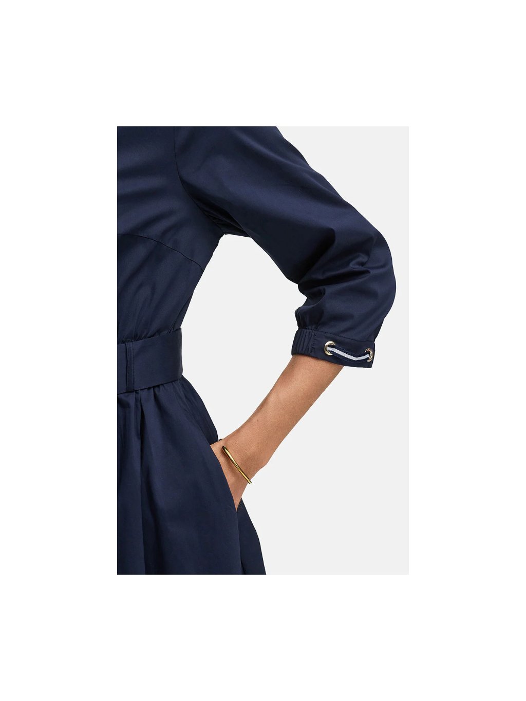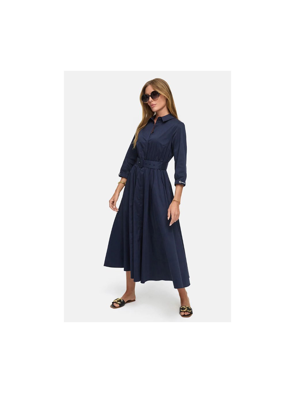 Tmavě modré propínací šaty CATNOIR s límečkem. V pase a na rukávech guma, rozšířená sukně a boční kapsy.
