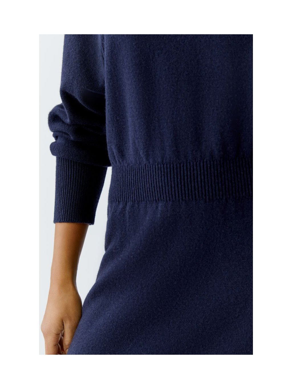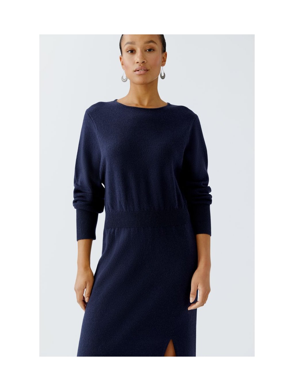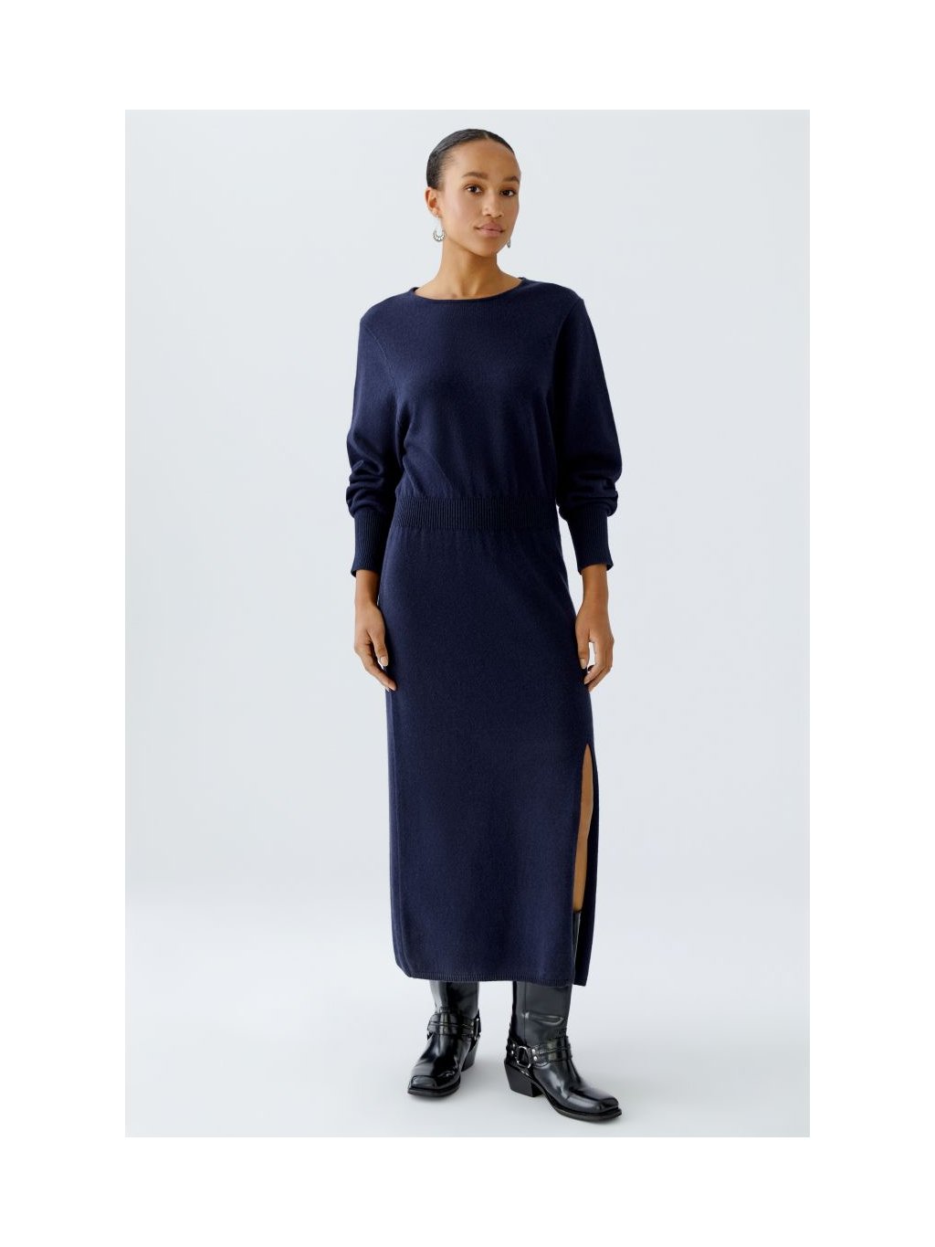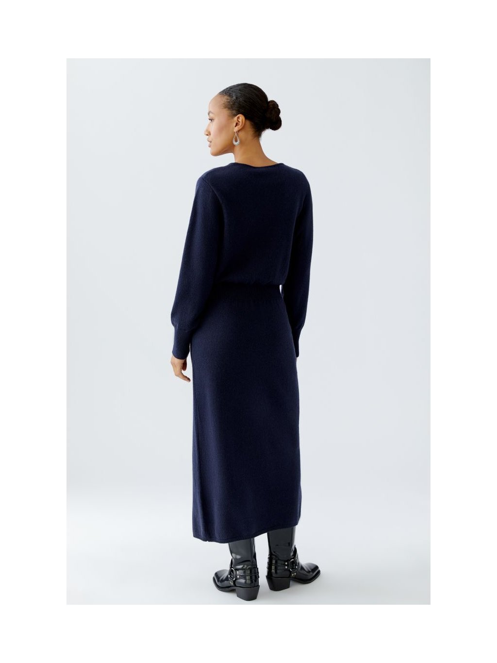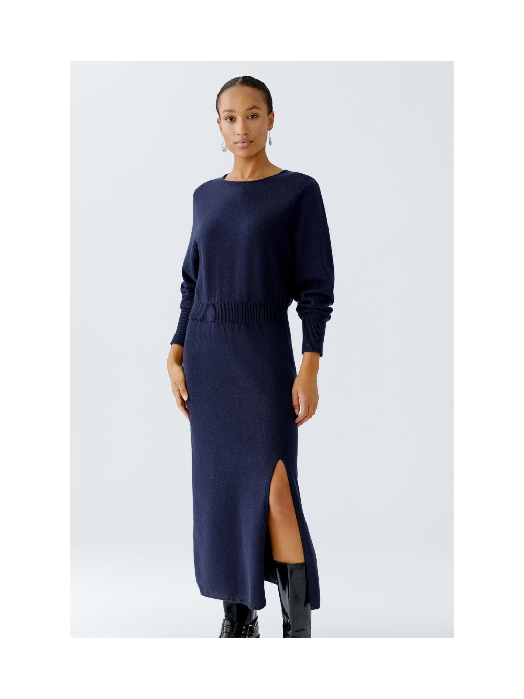 Pletené šaty s dlouhým rukávem, v pase zúžené a ve přední části rozparek.