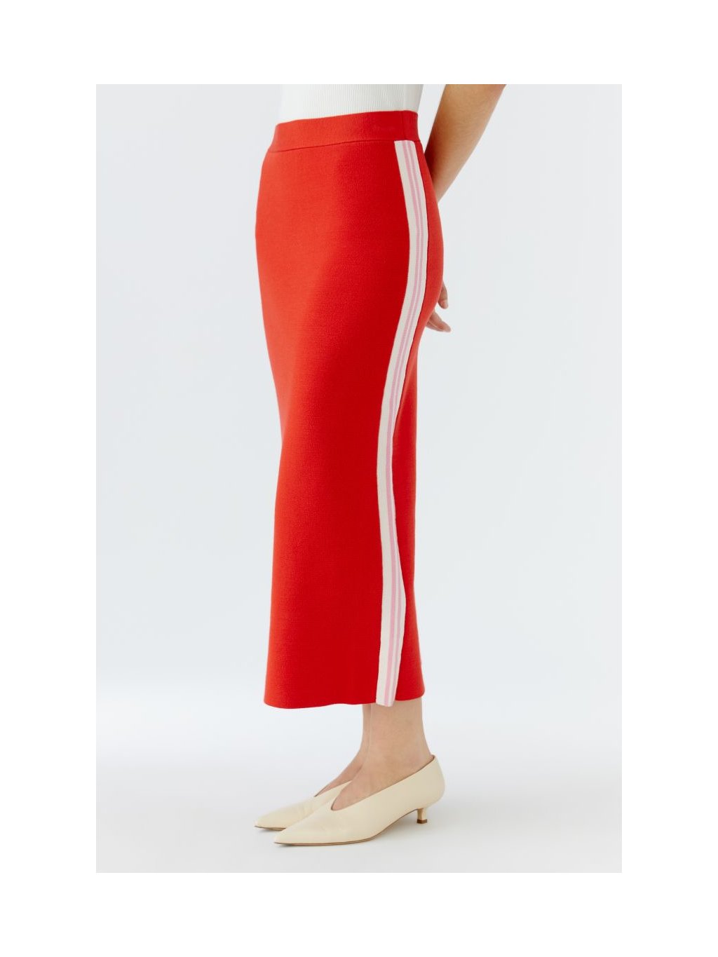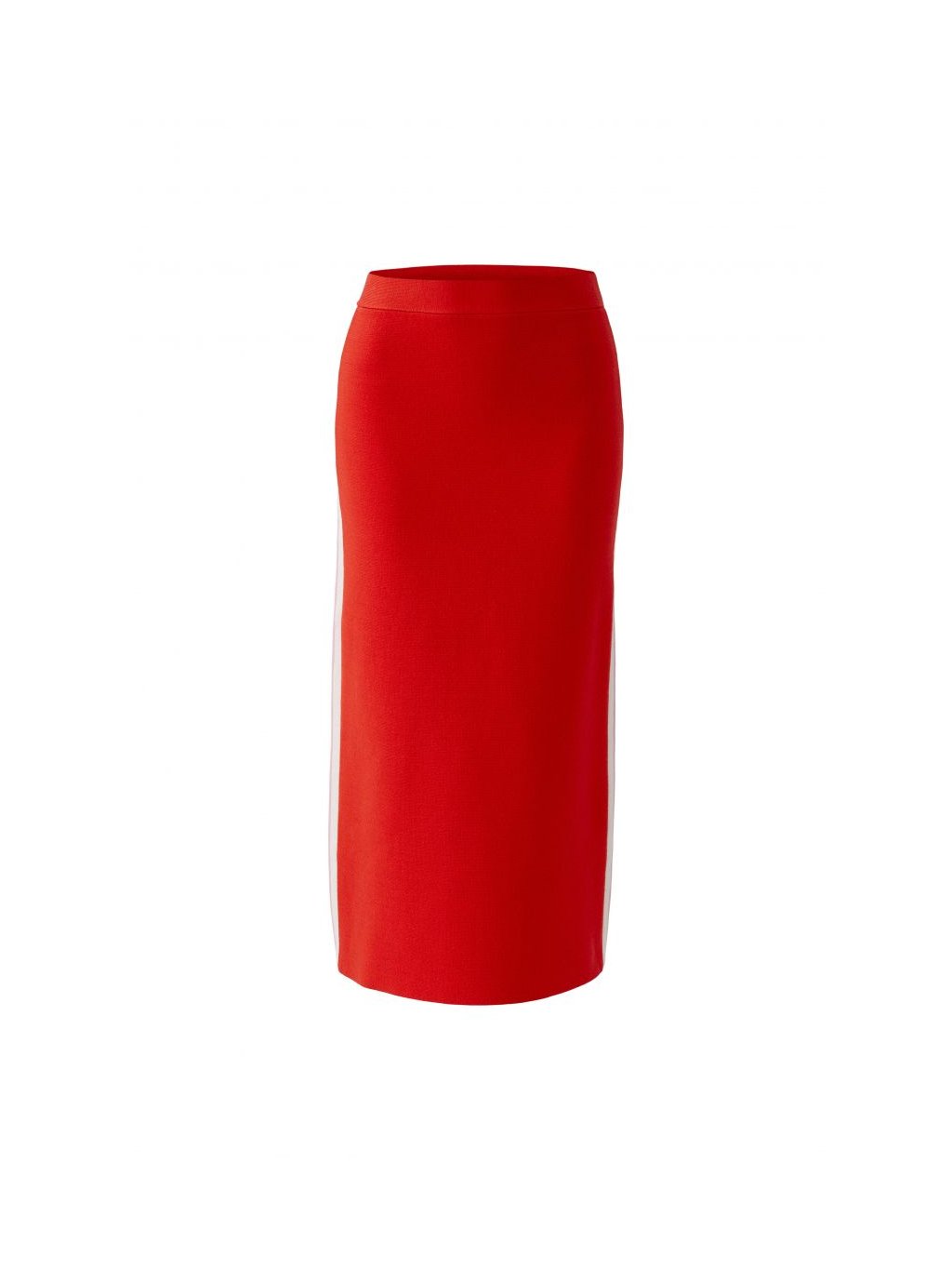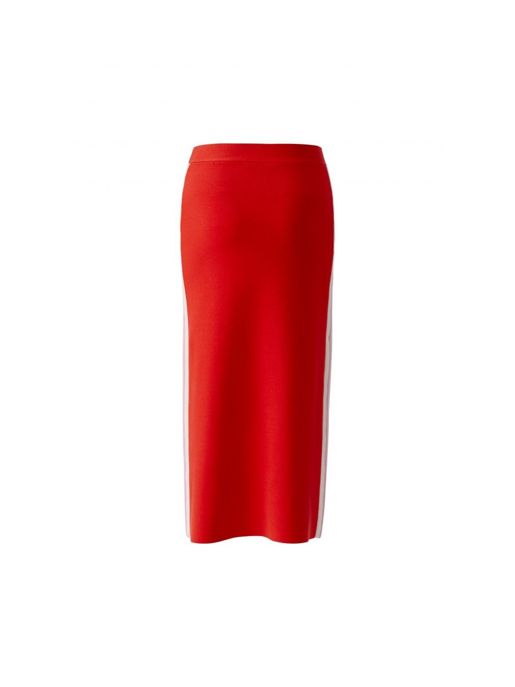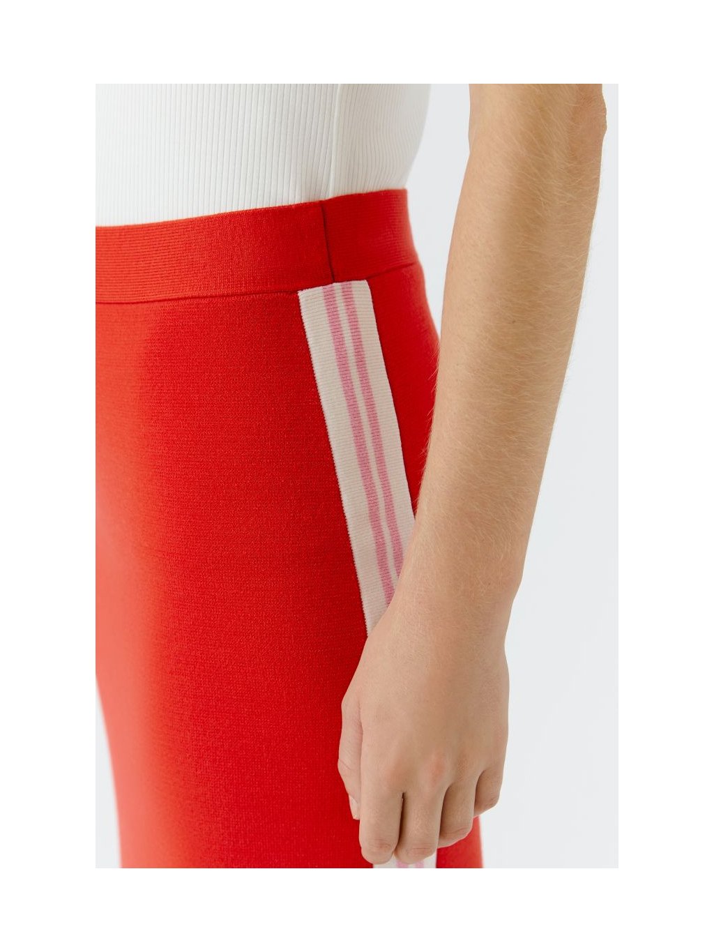 Červená pletená sukně OUI s bočními bílorůžovými lampasy.