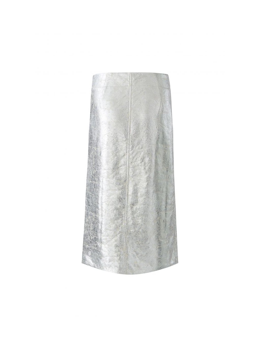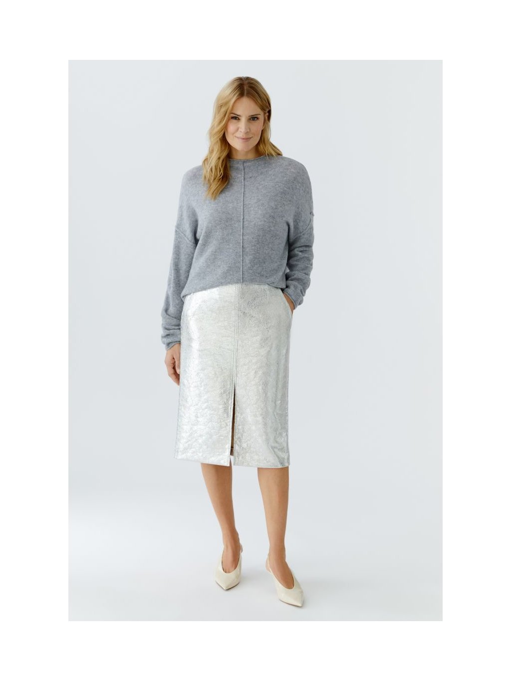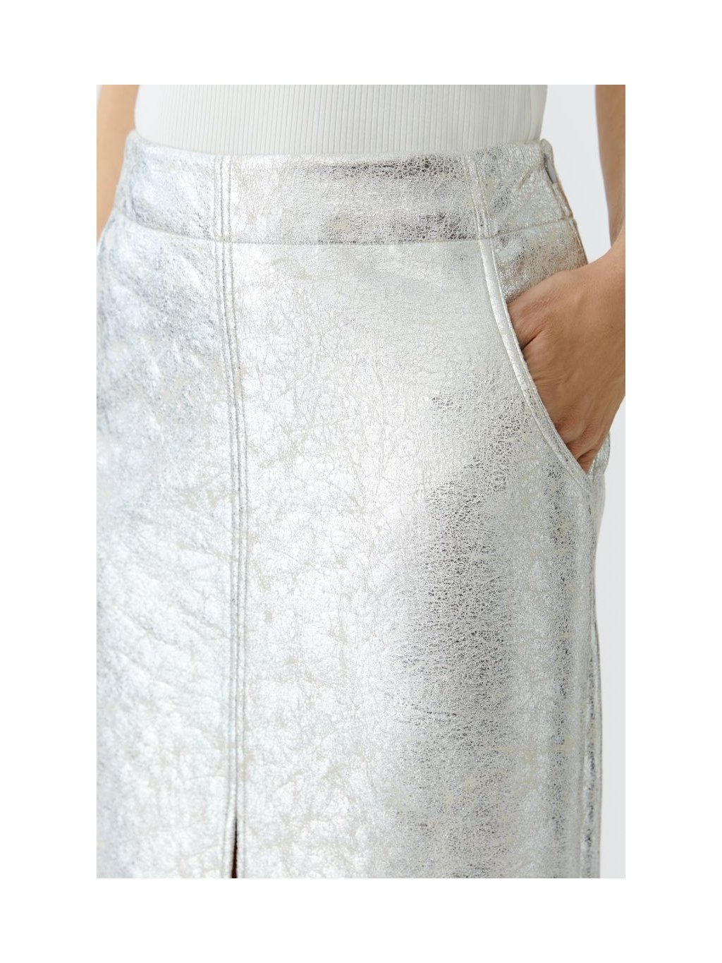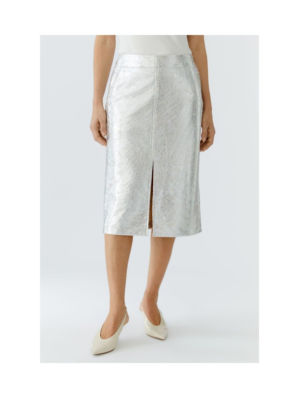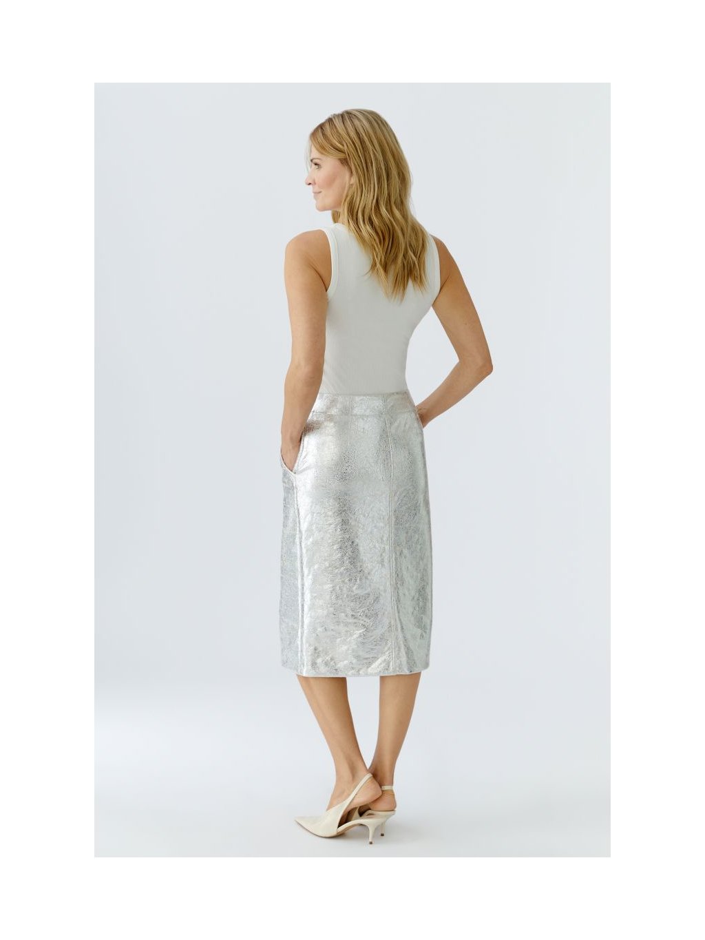 Sukně z kolekce OUI je vyrobena z hladké látky. Model se vyznačuje výrazným, třpytivým materiálem.