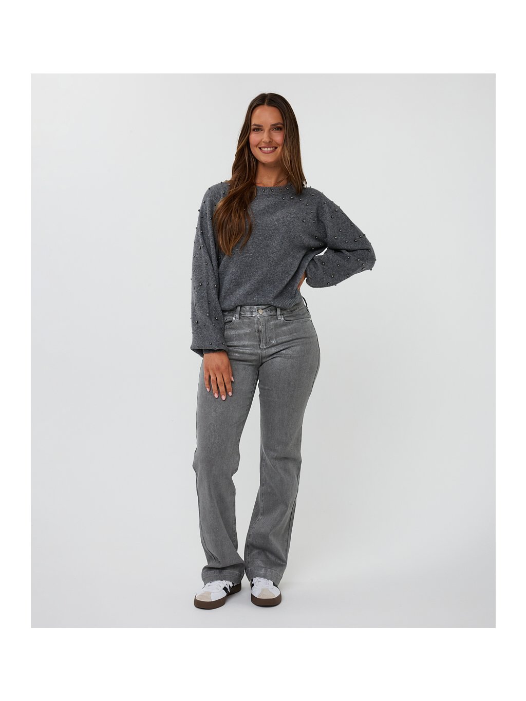 Pohodlný svetr s malými korálky přes ramena a rukávy pro hravý nádech. Svetr je vyroben z 53 % bavlny, 25 % akrylu, 20 % polyesteru a 2 % spandexu.
