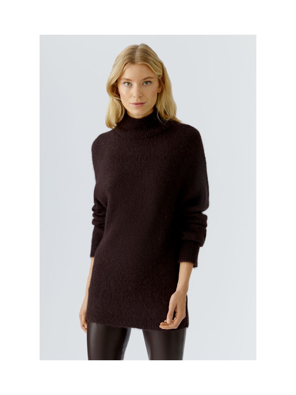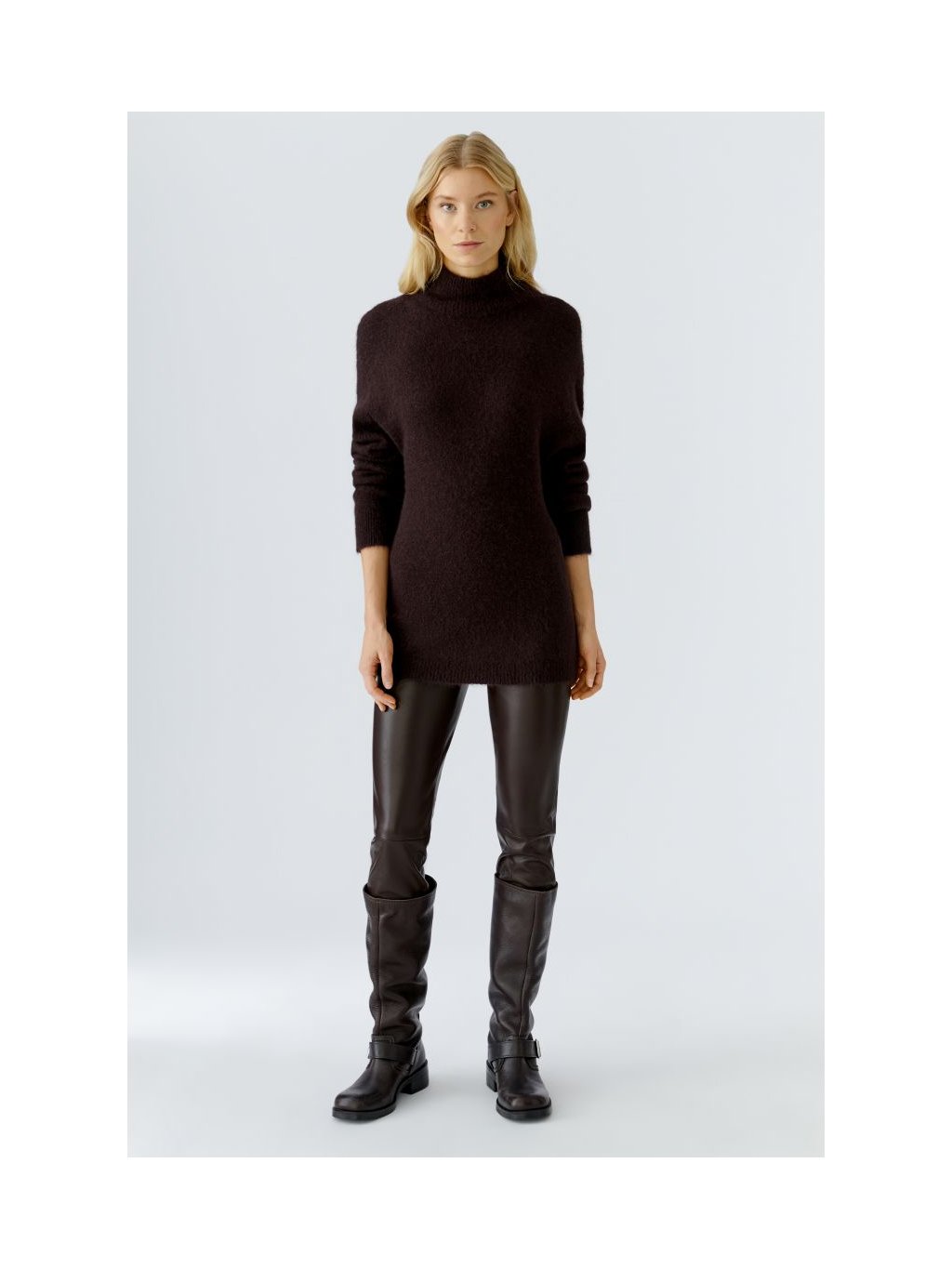 Pohodlí a styl se snoubí v tomto bezešvém pleteném svetru z měkké směsi alpaky. Vysoký stojáček, dlouhé rukávy a delší délka z něj činí všestranný kousek pro vrstvení.
