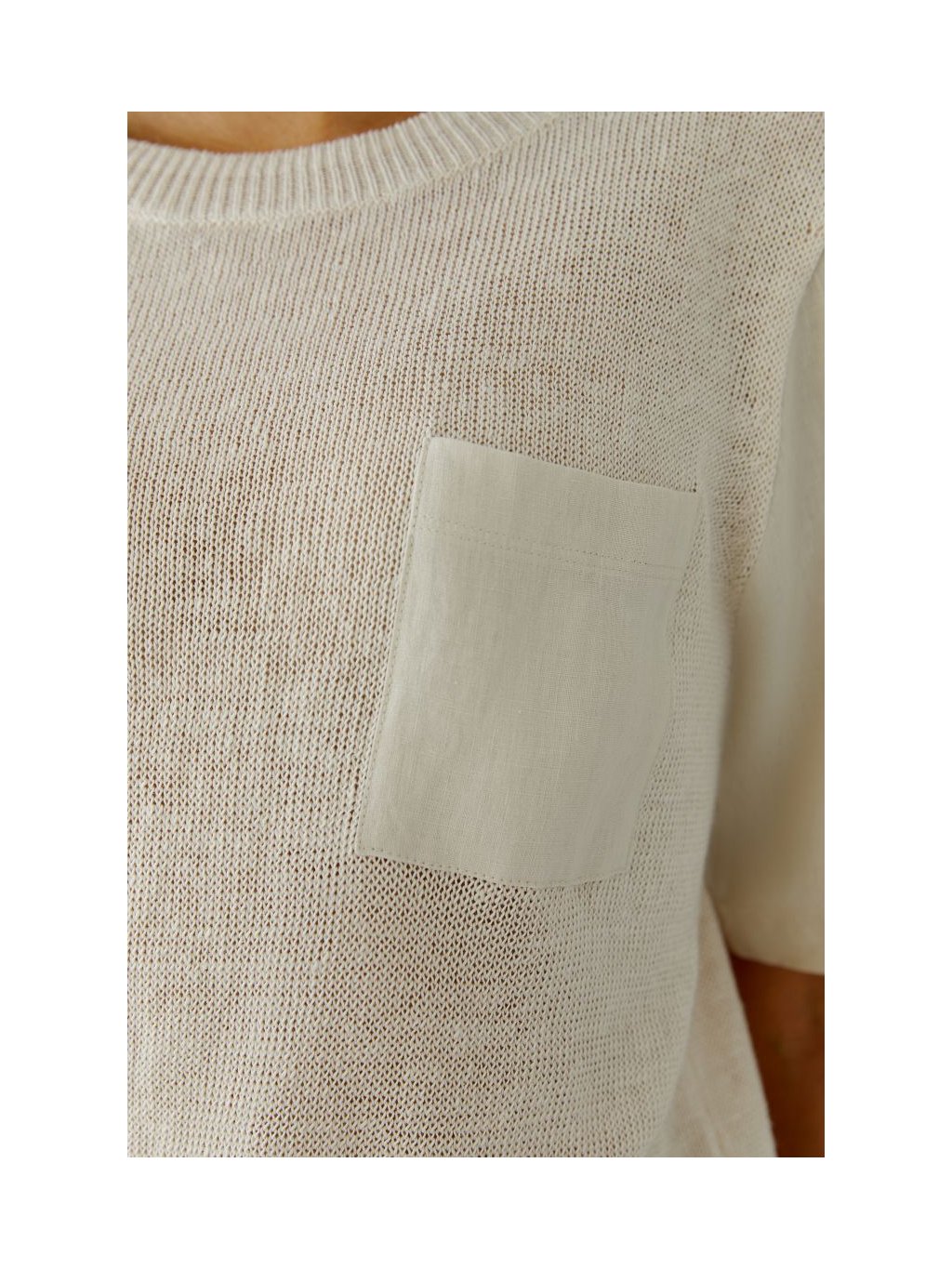 Svetr ze 100% lnu s nášivkami: rukávy a náprsní kapsa z lněné látky v tónu v barvě
