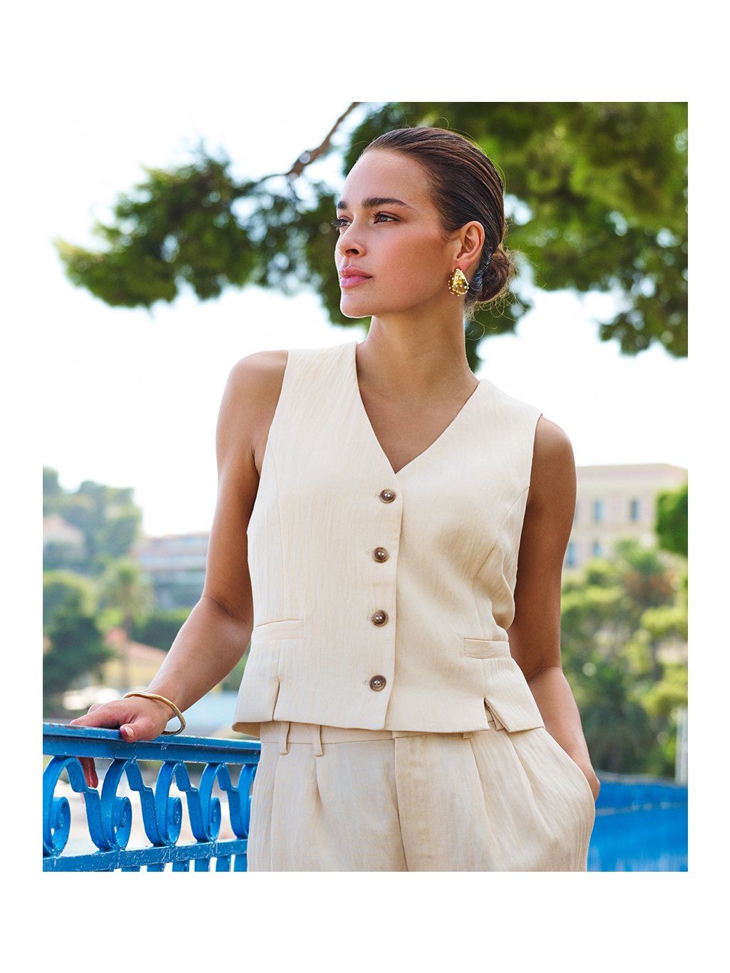 Vesta ESQUALO do V, zapínání na knoflíky. Efektní rozparky v přední části a v zadní části stahovaní s kovovou sponou.